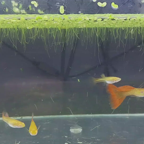 You can choose between numerous Guppy fish variations, differencing in the shape of the body as well as the colour of the fish. The most common colours are red, green and blue. Guppy variations include Veiltail guppy, Lacetail guppy, Lyretail guppy, Flagtail guppy, Bottom and Double swordtail guppy, Long fin guppy, Fantail guppy, Red tail guppy, Triangle tail guppy, Rounded guppy, Fancy guppy, Tuxedo guppy, Glass guppy, Grass guppy, Mosaic guppy, King Cobra guppy, Snakeskin guppy and Peacock guppy.